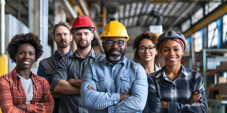 Portrait of a group of diverse industrial workers standing together in a warehouse