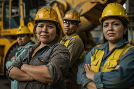 A Diverse professionals at construction site, showcasing teamwork and industrial development