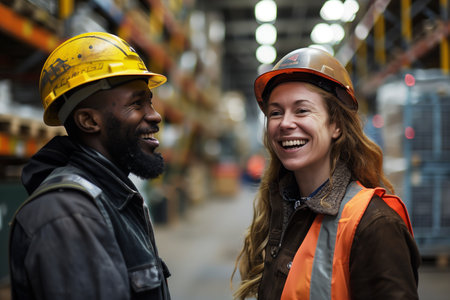 Industrial Harmony: Joyful Workers in Factory Setting