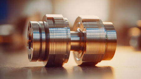 Close-up view of precision metal parts arranged on a workshop table, showcasing the intricate design and quality craftsmanship. Ideal for industrial themes.