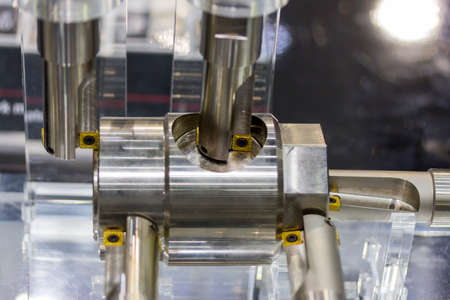 Manufacturing CNC professional lathe machine. Industrial concept.
