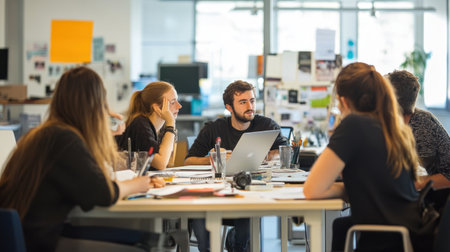 A diverse group of people sitting around a table, engaged in a collaborative discussion or meeting, A group of diverse individuals collaborating on a project