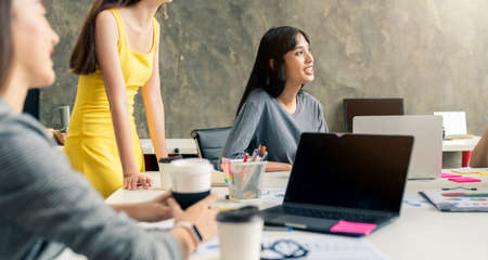 Group of colleagues asian male and female having an informal meeting Business people discussing ideas in office