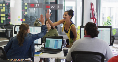 Group of multiethnic business people working and communicating together in modern office