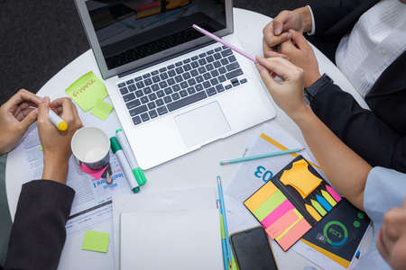 Top view Business meeting. Business team brainstorming while sitting at the office table together.