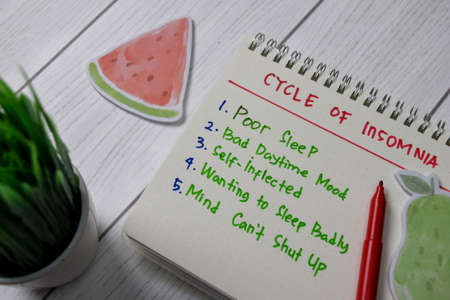 Cycle of Insomnia write on a book with keywords isolated wooden table.