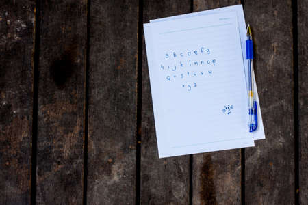 Selective focus of English letters with pen isolate on white background for study English concept. Cubes with letters
