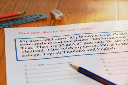 handwriting marking error on English word on draft paperwork for proofreading concept