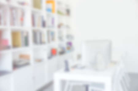 Blurry Library background off white Backdrop bright softness bookshelf with copy space. Book case Blurred background bright library silver gray lighting.