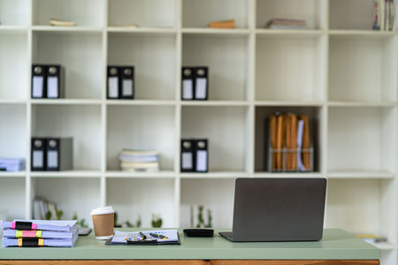 Office room for business people with notepads, graphs, and laptop computers for work files used to manage work for clients. Business idea