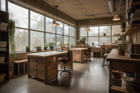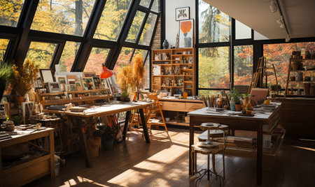 Studio - A room or building used for artistic or creator. AI generated illustration