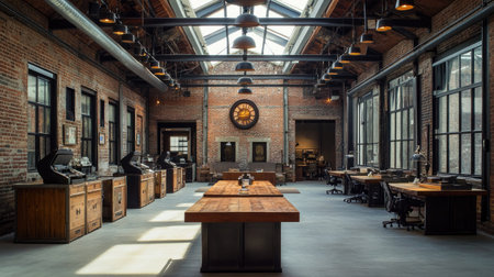 Inspiring office interior design Industrial style Studio space featuring Exposed brick architecture. Generative AI AIG 31.
