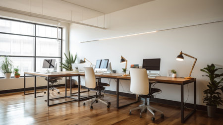 Modern office interior with furniture and equipment. Generative AI