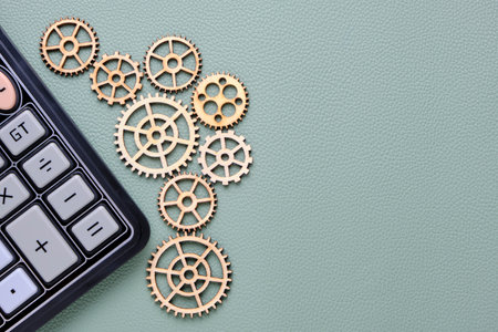 Blue Industrial Gears and Machine Parts on Reflective Surface Concept of Engineering and Precision Mechanics AI Generative