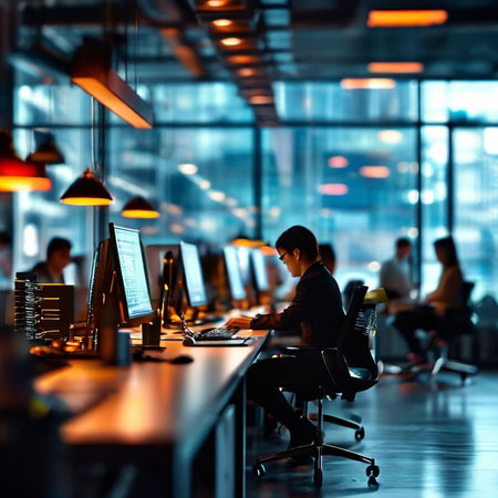 Embracing Technology: Captivating Modern Business Office with Blurred Bokeh Background