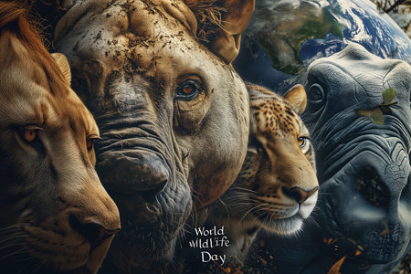 An eye catching illustration of World Wildlife Day with the animals, Earth Day concept. Created using Generative AI tools.