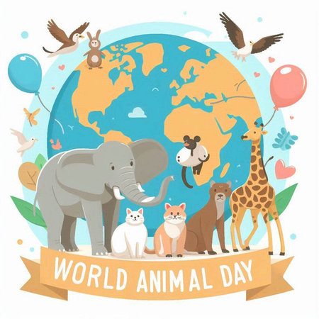 World Animal Day greeting card design with cute animals. Vector illustration.