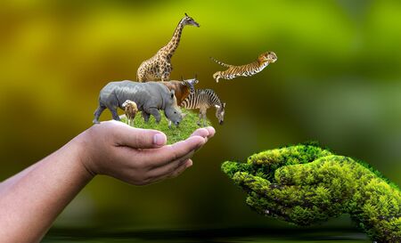 World Animal Day World Wildlife Day Groups of wild beasts were gathered in the hands of people