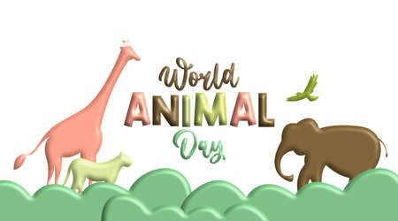 World Animal Day greeting card with cute cartoon animals and lettering.