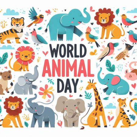 World Animal Day design template with cute animals and birds. Vector illustration.