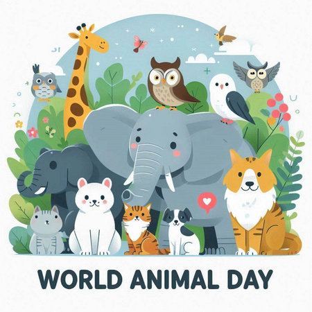 World Animal Day. Cute card with cute animals. Vector illustration.