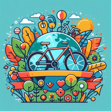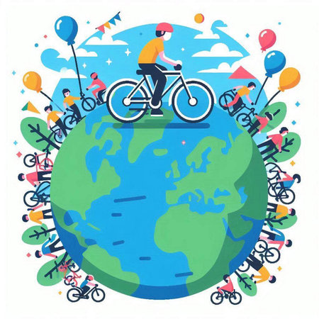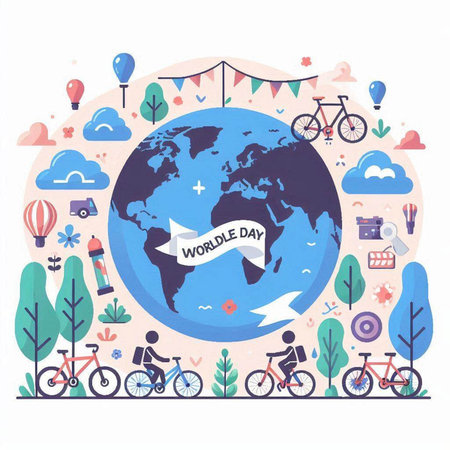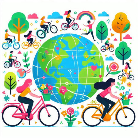 world bike day. Celebration happy globe riding world. June 3. Go Green Save Environment. fresh air, energy of nature, relaxation, freedom. Active healthy lifestyle.