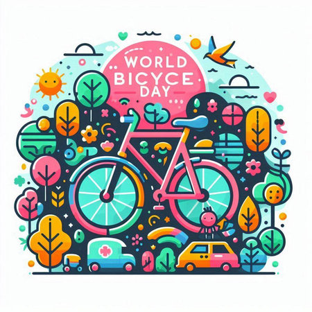 World Bicycle Day 3 June. Car free day, Clean Air for blue skies concept vector disign.