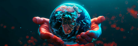 hands holding a planet Earth with ocean texture, clean lines, World Oceans Day. Generative AI