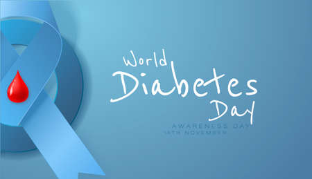 World Diabetes Day. Poster with ribbon with a drop of blood and Blue Circle
