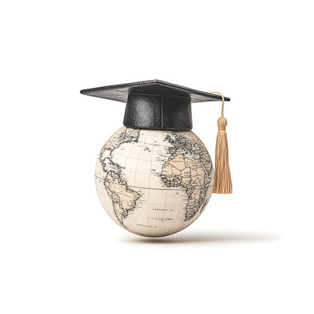 Globe adorned with a graduation cap symbolizes global education and achievement