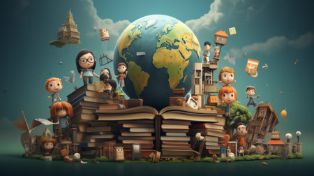 International Day of Books and Copyrights 23th April 3D Cartoon Generative AI