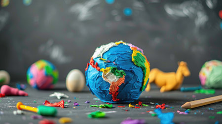 Planet Earth made of plasticine, colorful continents for educational or children learning themes