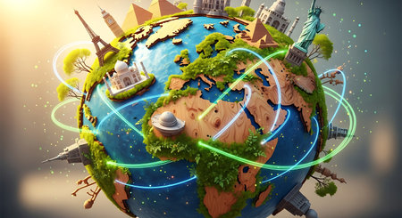 Earth planet with travel landmarks. Elements of this image furnished by NASA