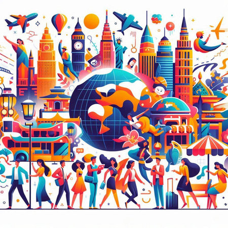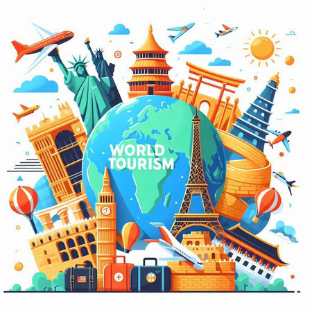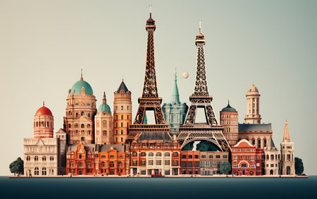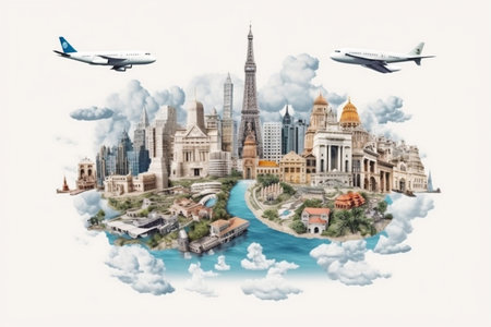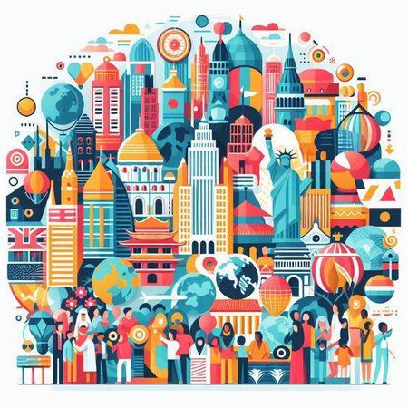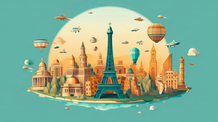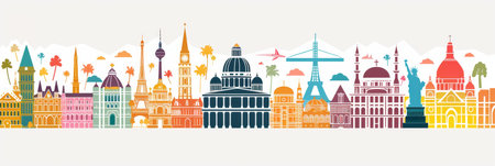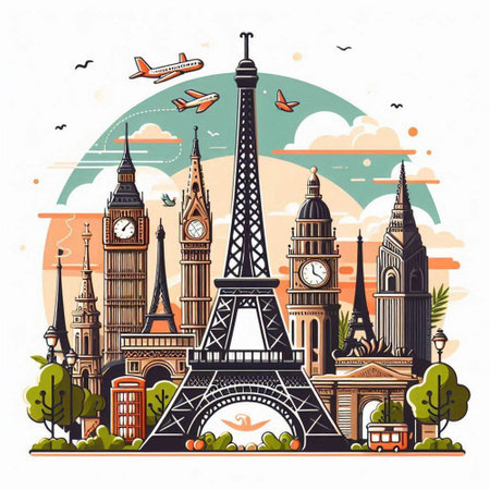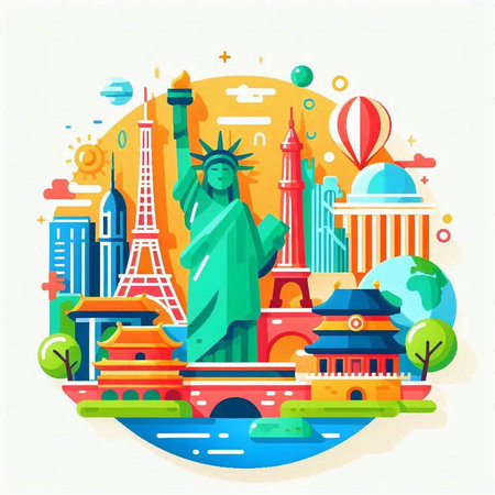Vector illustration of Explore the world with famous architectural landmarks