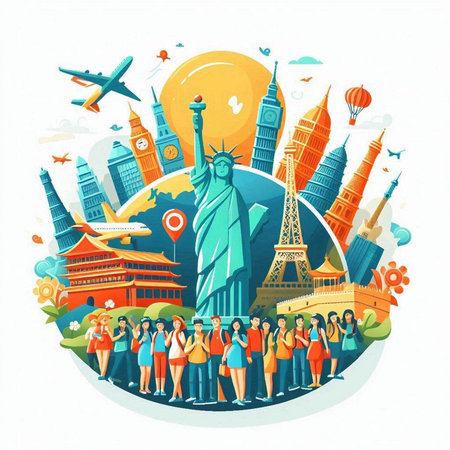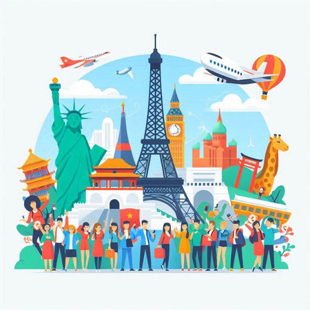 Travel around the world. Tourists and famous landmarks of the world.