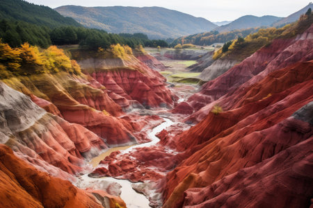 AI Generated. Colorful rock formations display a variety of textures and shades in a natural setting at sunset