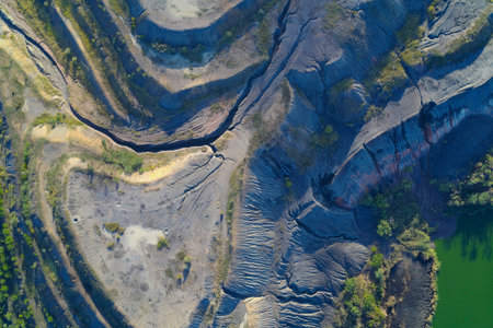 Geological section of soil, layers of coal gold. Overburden open mine anthracite. Consequences after rock explosion