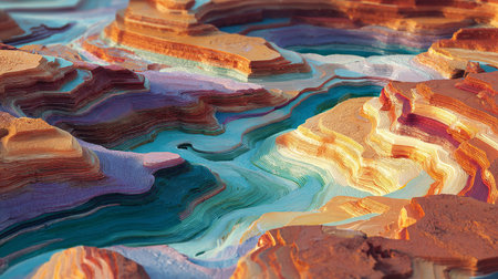 This stunning abstract artwork showcases vibrant layers of geological colors and intricate textures, creating a mesmerizing visual display. Perfect for artistic inspiration or design concepts.