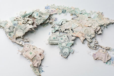 A detailed map of the world composed entirely of assorted banknotes showcases a unique artistic interpretation of global geography.