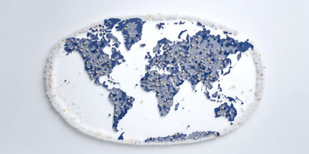 Image of stylized world map in blue with a 3D effect on a white background. Concept of global connectivity and travel. Design for educational graphics, world statistics visual representation. AIG35.