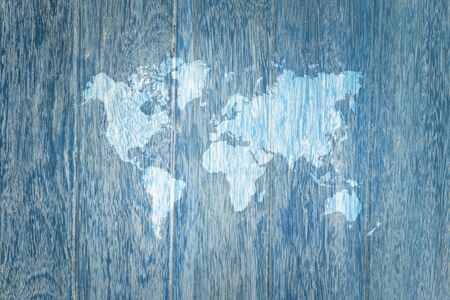 This captivating wood texture map of the world showcases intricate details and contours against a rustic wooden surface illuminated by soft natural light.
