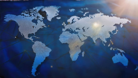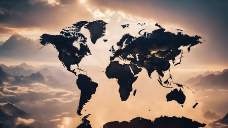 This captivating image depicts a world map intertwined with digital data elements, showcasing the global network and technological advancements. Ideal for themes of exploration and connectivity.