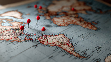 Global Navigation System: World Map with Location Pins for Business Travel & International Transportation