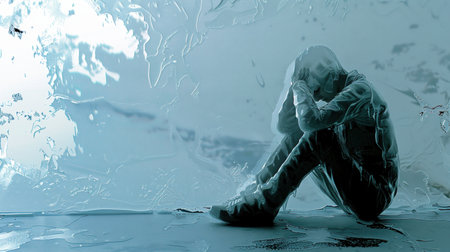 Heartbreaking scene: A solitary figure hunched in the corner, eyes downcast, lost in sadness and solitude.
