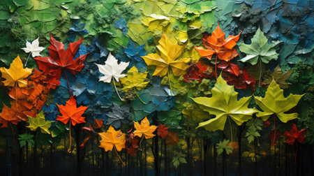 Explore the vibrant interplay of colorful leaves in this abstract nature background, perfect for creative projects or as a calming decoration.