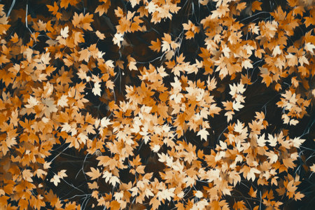 Autumn foliage display vibrant leaves in rich hues, arranged as a blanket, top view, flat lay