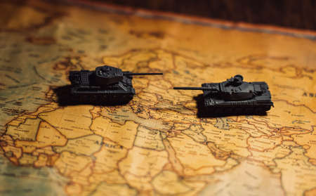 Toy tanks on the map. Military operations in Ukraine.