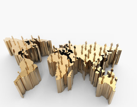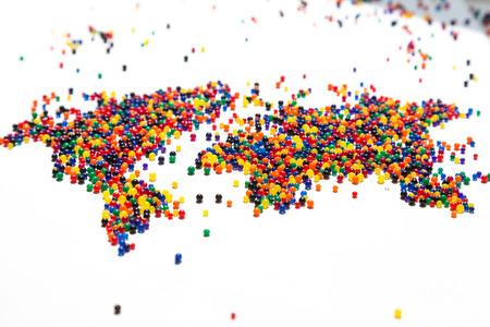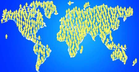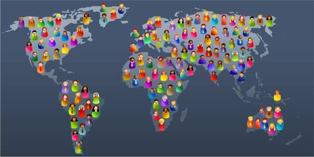World map. Large group of business people, workers, family members and students organised into world map. Collection of icons made of little busy people.