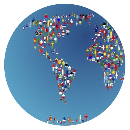 Multicolored diversity people in Globe map shape isolated. file layered for easy manipulation and custom coloring.