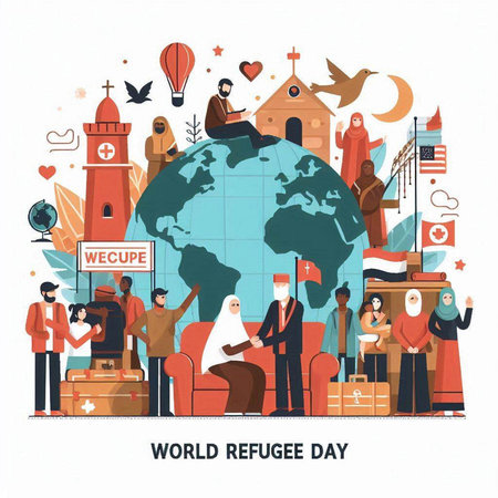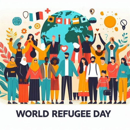 World Refugee Day. Vector illustration of a group of people around the world.